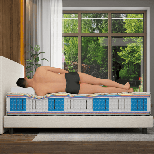 Pametna razporeditev omogoča, da so vzmeti mehkejše tam, kjer se telo mora pogrezniti (npr. ramena in boki), in trše tam, kjer je potrebna stabilna podpora (npr. ledveni in medenični predel). Rezultat je naravna poravnava hrbtenice, zmanjšan pritisk na sklepe in večja sprostitev med spanjem.