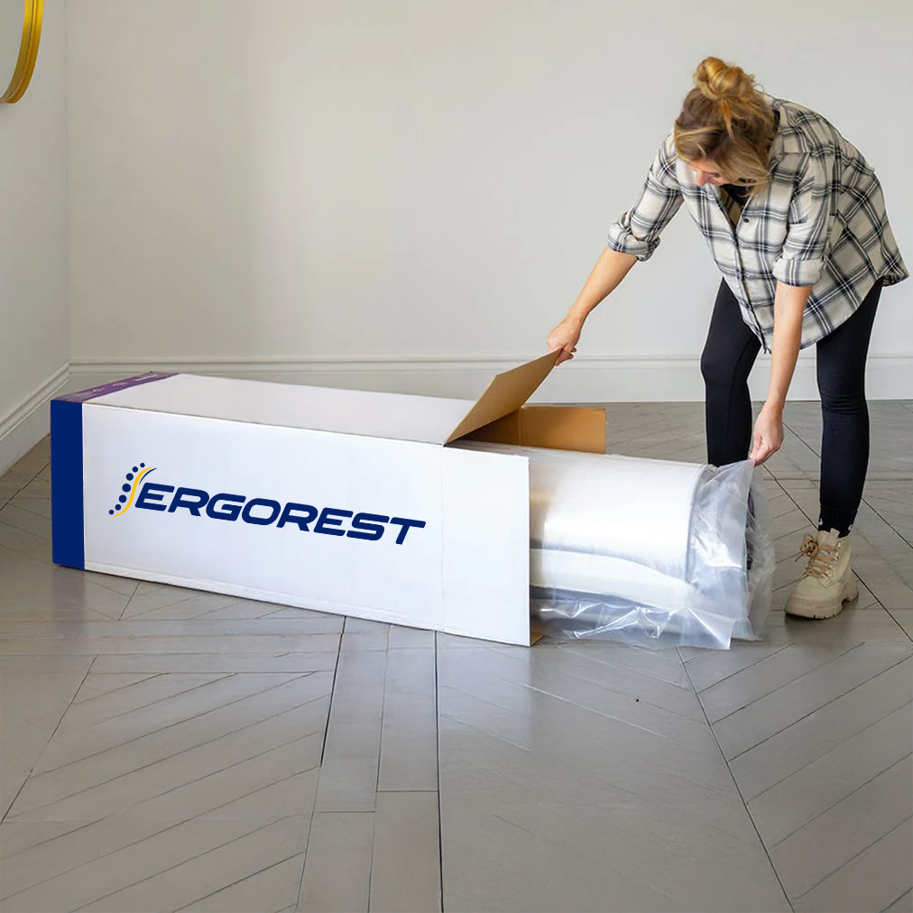 Da – vzmetnica Ergorest Ionix se dostavi zvita in vakuumsko pakirana v zaščitni embalaži. To je sodoben, higienski in prostorsko učinkovit način pakiranja, ki omogoča enostavno dostavo tudi v ozka stopnišča, dvigala ali stanovanja brez dviga v nadstropje.